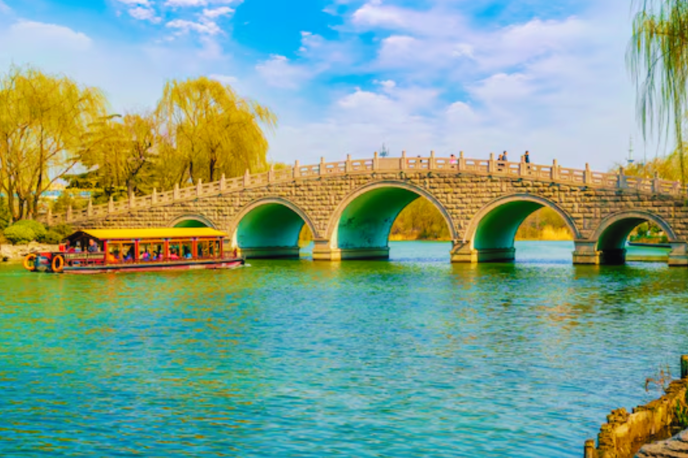Usai sarapan pagi, kita memulai pagi dengan mengunjungi Daming Lake, danau yang indah dan tenang di jantung kota Jinan, dikelilingi taman hijau dan bangunan klasik yang menciptakan suasana damai dan menyegarkan. Dari sana, kita melanjutkan ke Qu Shui Ting Street, jalan yang kaya akan nuansa sejarah dan budaya, dipenuhi bangunan bergaya tradisional dan kedai-kedai kecil yang menarik untuk dijelajahi. Setelah itu, kita mengunjungi Black Tiger Spring, salah satu mata air paling terkenal di Jinan yang airnya mengalir deras dari mulut tiga patung harimau, menciptakan suara gemuruh yang menjadi asal namanya. Kemudian, kita berjalan-jalan santai di Quancheng Square, alun-alun kota yang luas dan hidup, tempat sempurna untuk menikmati suasana lokal sebelum mengakhiri eksplorasi di kota ini.